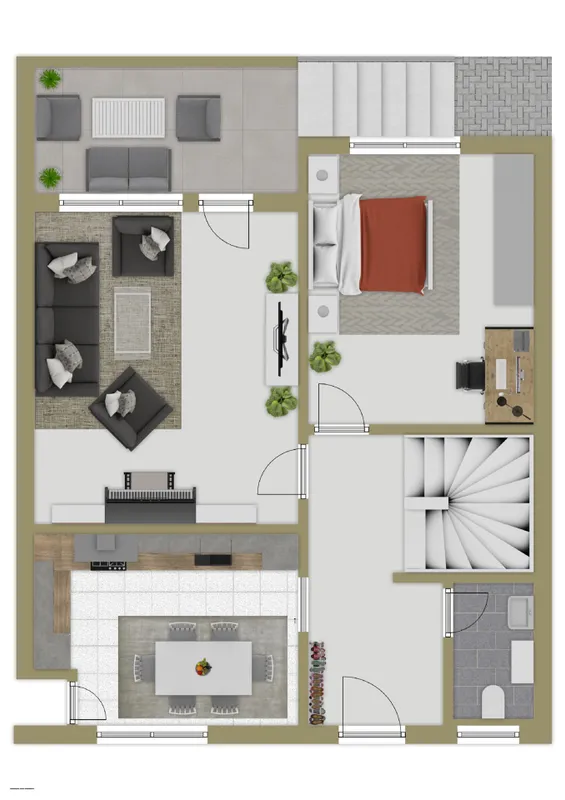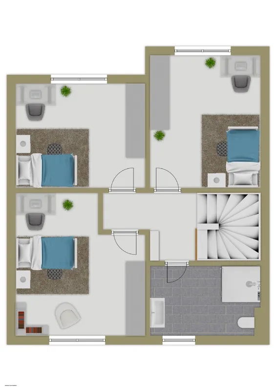 RückansichtGartenEingangsbereichGäste WCKücheWohnzimmerLoggiaSchlafzimmer EGFlur OGZimmer 1Zimmer 2Zimmer 3BadezimmerHausansichtEGOGLageplan