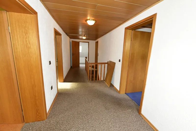 Ansicht von der EinfahrtEingangsflurKüche mit Essplatz im ErdgeschossZimmer im ErdgeschossBadezimmer im ErdgeschossFlur im 1. ObergeschossZimmer 1 im 1. ObergeschossZimmer 2 im 1. ObergeschossBlick in den Garten mit NebengebäudeZimmer 3 im 1. ObergeschossZimmer 4 im 1. ObergeschossZimmer 5 im 1. ObergeschossBadezimmer im 1. ObergeschossHeizungsanlage Hauswirtschaftsraum 1 im ErdgeschossHauswirtschaftsraum 2 im ErdgeschossTeich mit Blick auf überdachten Freisitz am HausSeiten-/Strassenansicht