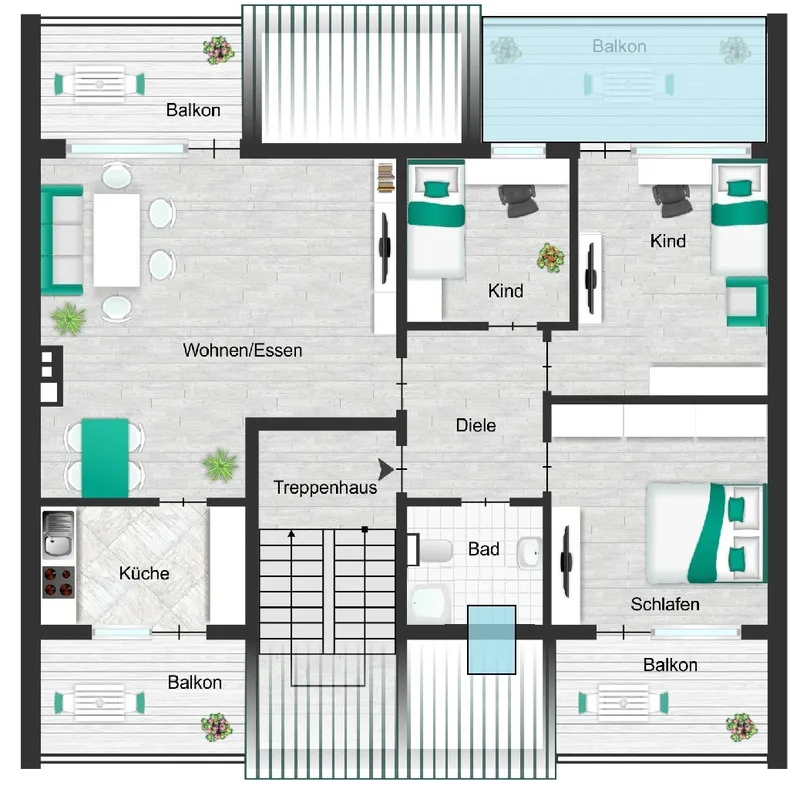 2. Loggia am WohnzimmerÜberdachte Loggia m SchlafzimmerGroßes Wohn-/EsszimmerZugang zu einer LoggiaDie Küche3. Loggia direkt an der KücheSchlafzimmerKinderzimmer mit LoggiazugangDie 4. LoggiaArbeitszimmerTageslichtbad mit DuscheGrundriss- 3D- VisualisierungGrundrss bemaßtDie WohnungsdieleDer GemeinschaftsgartenNur wenige Schritte entferntBlick aus dem Hamecke ParkHausansichtHausrückseite