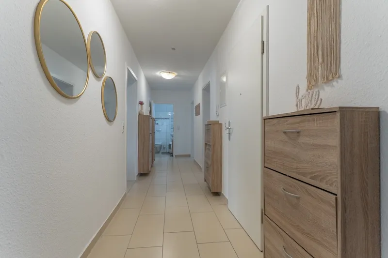 Sie betreten die schicke, renovierte Wohnung und gelangen von der geräumigen Diele zur linken Seite in das große Schlafzimmer, das Duschbad und die Wohnküche mit dem Ausgang zu einem der [...]